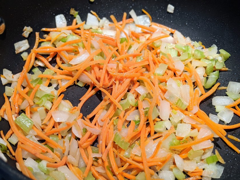 - Heat olive oil in a large skillet over medium high heat. Add onion and celery, and cook, stirring often, until tender, about 3-4 minutes. Stir in carrorts until heated through, about 1 minute covered.